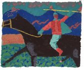 At the core of their practice is an exploration of paper pulp as both material and image. Rather than treating it as a support for painting, the artist works directly with the pulp, allowing it to form structure, surface, and narrative simultaneously. This material-driven approach is closely tied to themes of memory, lived experience, and elements of Greek folk tradition, with recurring motifs such as mountains, houses, horses, and vehicles functioning as symbolic anchors across their work.